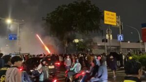 Massa aksi tidak hanya memblokade jalan, tetapi juga membakar ban di tengah persimpangan. Beberapa orang terlihat menyalakan petasan dan kembang api, menambah panas suasana malam itu. Situasi ini membuat warga sekitar resah karena jalur utama yang biasa dilalui TransJakarta ikut terganggu.
